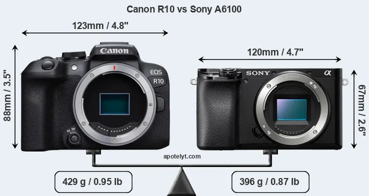 Size Canon R10 vs Sony A6100