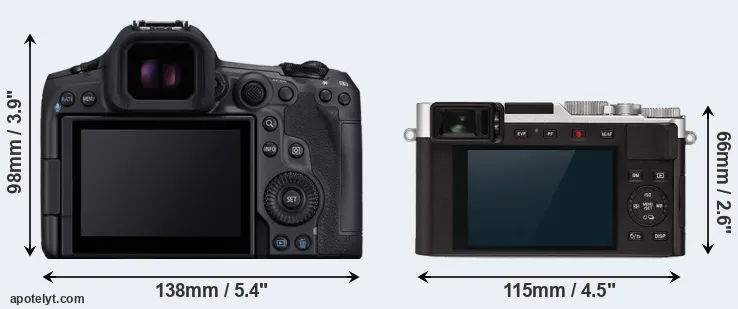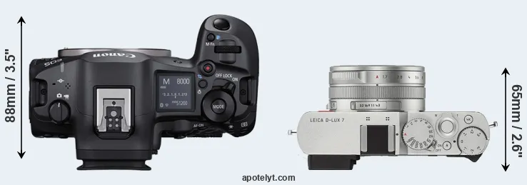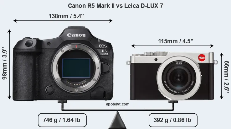 Size Canon R5 Mark II vs Leica D-LUX 7