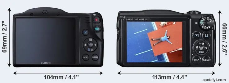| 7. | Canon SX430 | 104 mm | 69 mm | 85 mm | 323 g | 195 | n | Jan 2017 | US$ 299 | ebay.com | |