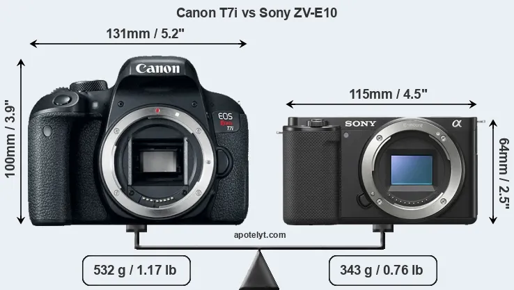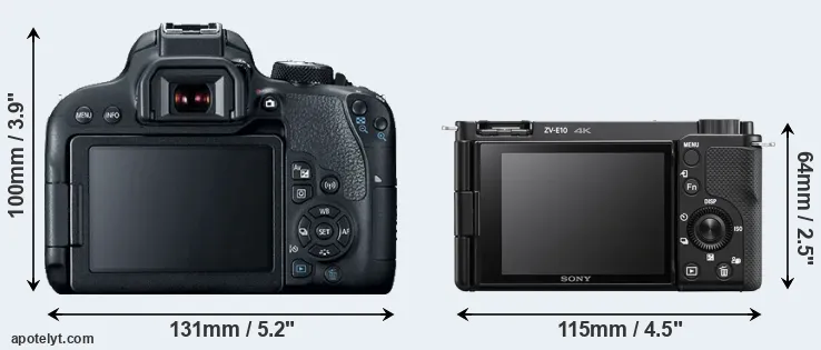 Die Canon EOS Rebel T7i und die Sony ZV-E10 sind zwei digitale Kameras, die im Februar 2017 beziehungsweise im Juli 2021 vorgestellt wurden. Die T7i is eine digitale Spiegelreflexkamera, während es sich bei der ZV-E10 um eine spiegellose Wechselobjektivkamera handelt. Beide Kameras sind mit einem APS-C Sensor ausgerüstet. Beide Kameras bieten eine Auflösung von 24,0 Megapixel.