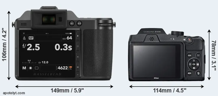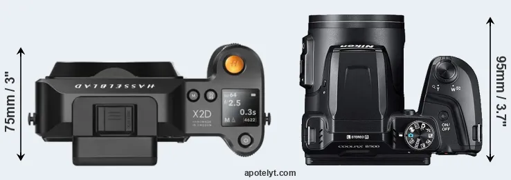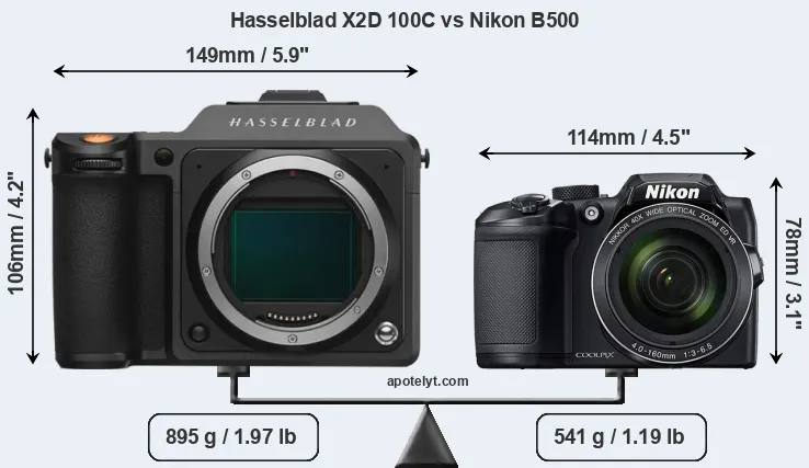Size Hasselblad X2D 100C vs Nikon B500