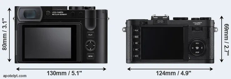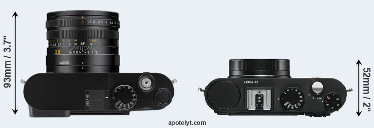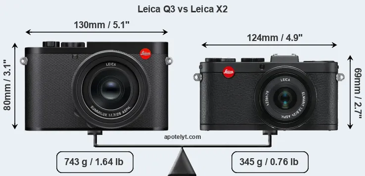 Size Leica Q3 vs Leica X2