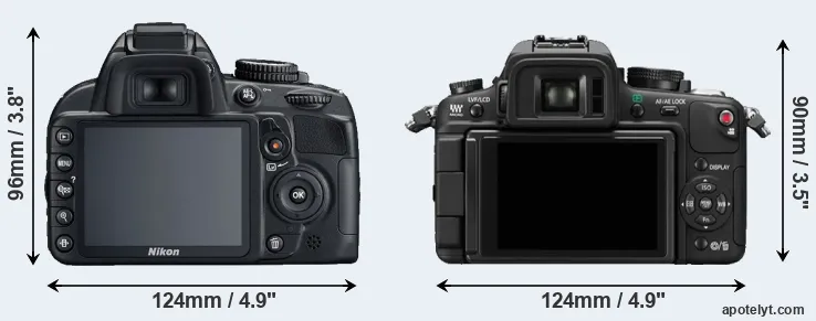 Die physische Größe und das Gewicht der Nikon D3100 und der Panasonic GH1 werden in der nachfolgenden Graphik illustriert. Die beiden Kameras werden entsprechend ihrer relativen Größe dargestellt. Alle Größenangaben sind auf den nächsten Millimeter gerundet.
