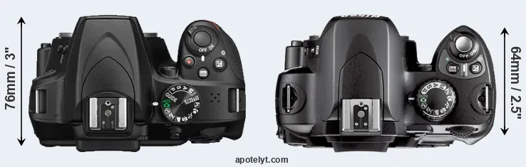 | 9. | Nikon D3200 | 125 mm | 96 mm | 77 mm | 505 g | 540 | n | Apr 2012 | US$ 599 | ebay.com | |