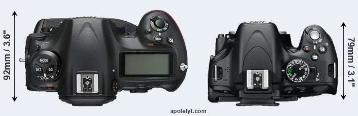 Die physische Größe und das Gewicht der Nikon D5 und der Nikon D5100 werden in der nachfolgenden Graphik illustriert. Die beiden Kameras werden entsprechend ihrer relativen Größe dargestellt. Alle Größenangaben sind auf den nächsten Millimeter gerundet.