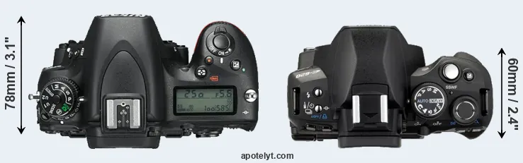 | 6. | Nikon D610 | 141 mm | 113 mm | 82 mm | 850 g | 900 | Y | Okt 2013 | US$ 1 999 | ebay.com | |