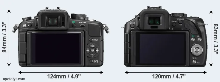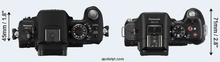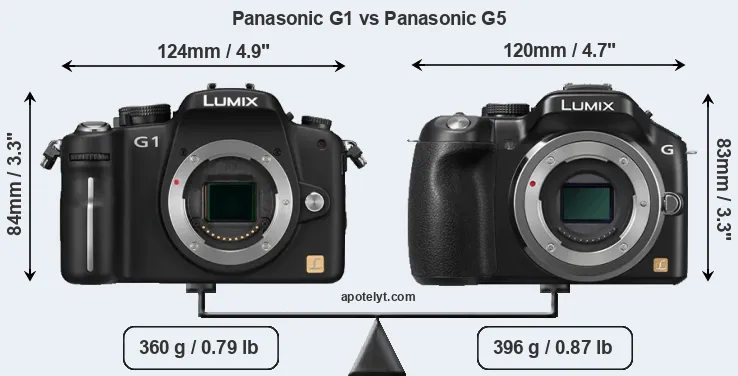 Die physische Größe und das Gewicht der Panasonic G1 und der Panasonic G5 werden in der nachfolgenden Graphik illustriert. Die beiden Kameras werden entsprechend ihrer relativen Größe dargestellt. Alle Größenangaben sind auf den nächsten Millimeter gerundet.
