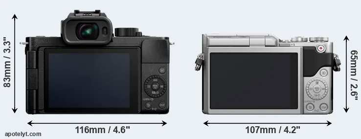 Die physische Größe und das Gewicht der Panasonic G100 und der Panasonic GX850 werden in der nachfolgenden Graphik illustriert. Die beiden Kameras werden entsprechend ihrer relativen Größe dargestellt. Alle Größenangaben sind auf den nächsten Millimeter gerundet.