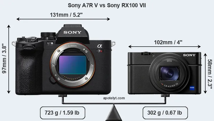 Die physische Größe und das Gewicht der Sony A7R V und der Sony RX100 VII werden in der nachfolgenden Graphik illustriert. Die beiden Kameras werden entsprechend ihrer relativen Größe dargestellt. Alle Größenangaben sind auf den nächsten Millimeter gerundet.
