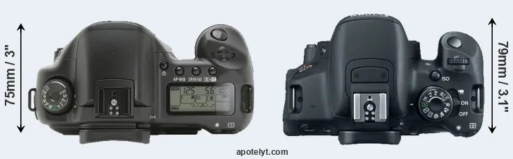 | 9. | Canon 70D | 139 mm | 104 mm | 79 mm | 755 g | 920 | Y | jul 2013 | US$ 1 199 | ebay.com | |