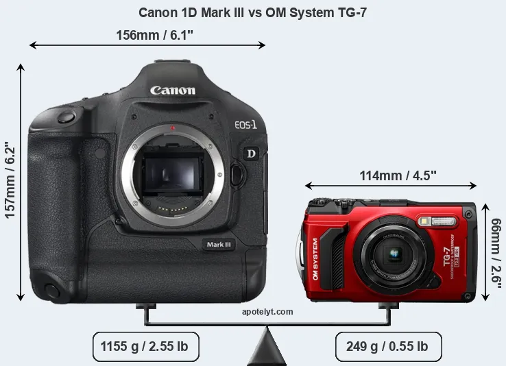 Size Canon 1D Mark III vs OM System TG-7