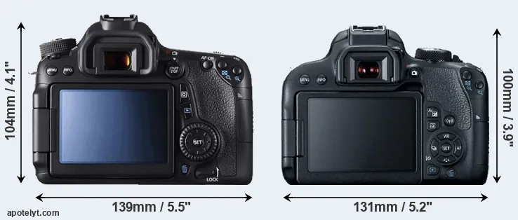 | 13. | Canon T6i | 132 mm | 101 mm | 78 mm | 555 g | 440 | n | feb 2015 | US$ 749 | ebay.com | |