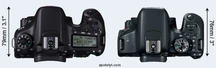 | 8. | Canon 77D | 131 mm | 100 mm | 76 mm | 540 g | 600 | n | feb 2017 | US$ 899 | ebay.com | |