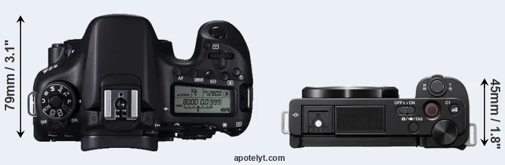 El tamaño físico y el peso de Canon 70D y Sony ZV-E10 se ilustran en el siguiente gráfico. Las dos cámaras se muestran según su tamaño relativo. Todas las dimensiones están redondeadas al milímetro más cercano.