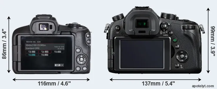 Más allá de esta instantánea de las funciones y características principales, ¿cuáles son las diferencias entre la Canon EOS R50 y la Panasonic Lumix DMC-FZ1000? ¿Cuál camara deberías comprar? Siga leyendo para descubrir cómo se comparan estas dos cámaras con respecto al tamaño de su cuerpo y otras caracteristicas.