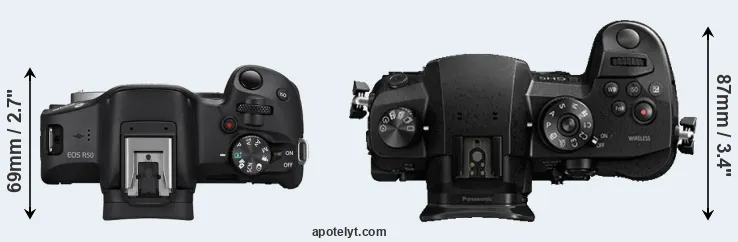 Más allá de esta instantánea de las funciones y características principales, ¿cuáles son las diferencias entre la Canon EOS R50 y la Panasonic Lumix DC-GH5? ¿Cuál camara deberías comprar? Siga leyendo para descubrir cómo se comparan estas dos cámaras con respecto al tamaño de su cuerpo y otras caracteristicas.