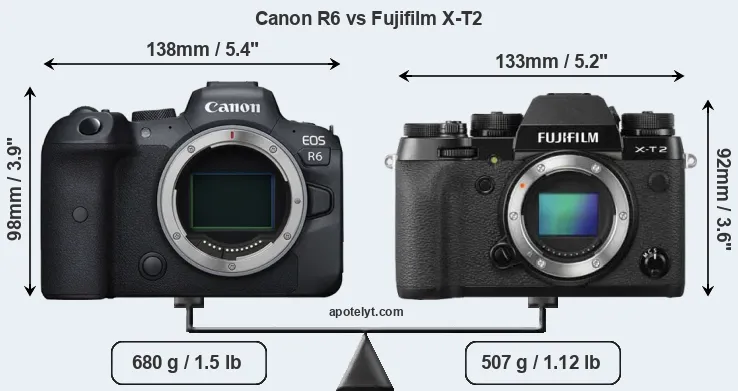 Size Canon R6 vs Fujifilm X-T2