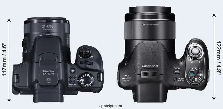 La Canon PowerShot SX70 HS y la Sony Cyber-shot DSC-H400 son dos cámaras digitales que fueron reveladas al público, respectivamente, en septiembre de 2018 y febrero de 2014. Tanto la SX70 y la H400 son cámaras compactas de objectivo incorporada, que están equipados con un sensor de 1/2.3 pulgada. La Canon tiene una resolución de 20,2 megapíxeles, mientras que la Sony proporciona 19,9 MP.
