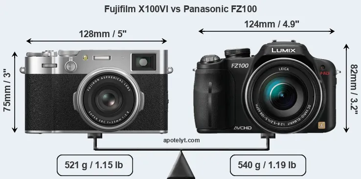 Size Fujifilm X100VI vs Panasonic FZ100