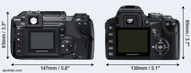 | 6. | Olympus E-330 | 140 mm | 87 mm | 72 mm | 637 g | 750 | n | ene 2006 | US$ 999 | ebay.com | |