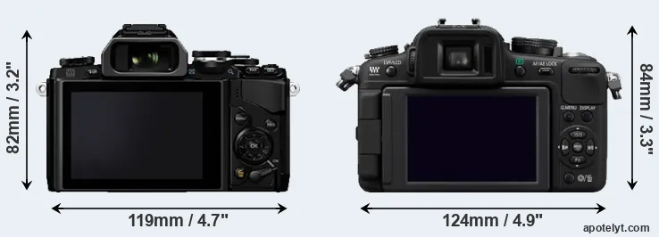 La Olympus OM-D E-M10 y la Panasonic Lumix DMC-G2 son dos cámaras digitales que fueron reveladas al público, respectivamente, en enero de 2014 y marzo de 2010. Ambas son cámaras cámara de objectivos intercambiables sin espejo, que están equipados con un sensor de cuatro tercios. La Olympus tiene una resolución de 15,9 megapíxeles, mientras que la Panasonic proporciona 12,0 MP.