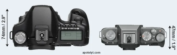 Compare 50D versus X-T100 top