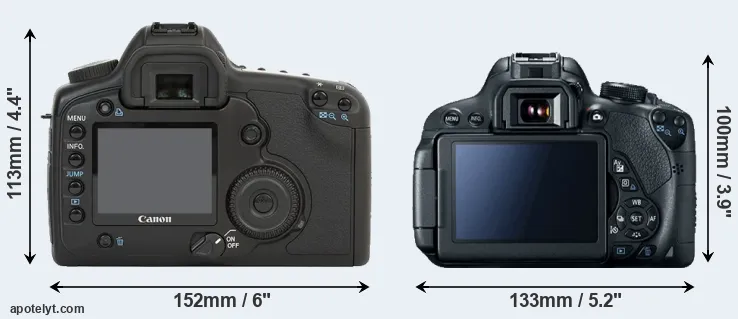 | 2. | Canon T5i | 133 mm | 100 mm | 79 mm | 580 g | 440 | n | Mar 2013 | US$ 649 | ebay.com | |