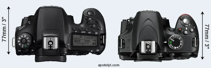 | 8. | Canon 80D | 139 mm | 105 mm | 79 mm | 730 g | 960 | Y | Feb 2016 | US$ 1 199 | ebay.com | |