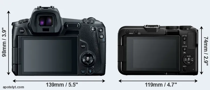| 9. | Canon R50 | 116 mm | 86 mm | 69 mm | 375 g | 230 | n | Feb 2023 | US$ 679 | amazon.com | |