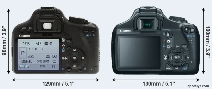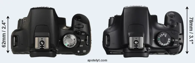 | 2. | Canon T3 | 130 mm | 100 mm | 78 mm | 495 g | 700 | n | Feb 2011 | US$ 449 | ebay.com | |