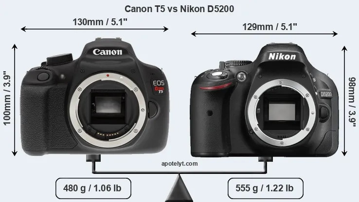 Size Canon T5 vs Nikon D5200
