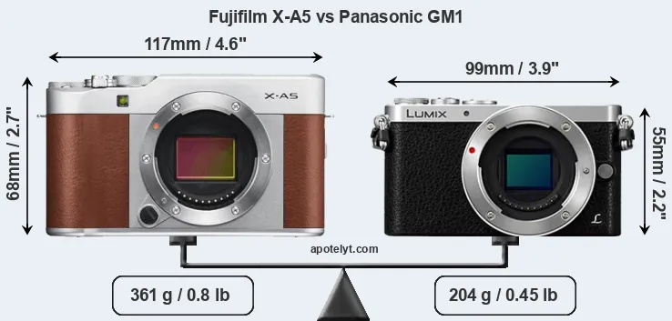 Size Fujifilm X-A5 vs Panasonic GM1