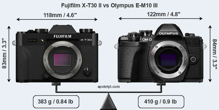Size Fujifilm X-T30 II vs Olympus E-M10 III