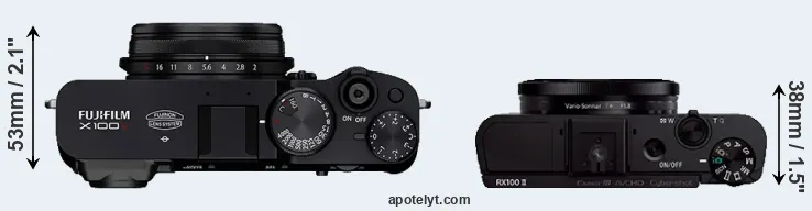 La taille physique et le poids du Fujifilm X100V et du Sony RX100 II sont illustrés dans le graphique ci-dessous. Les deux caméras sont affichées en fonction de leur taille relative. Toutes les dimensions sont arrondies au millimètre près.
