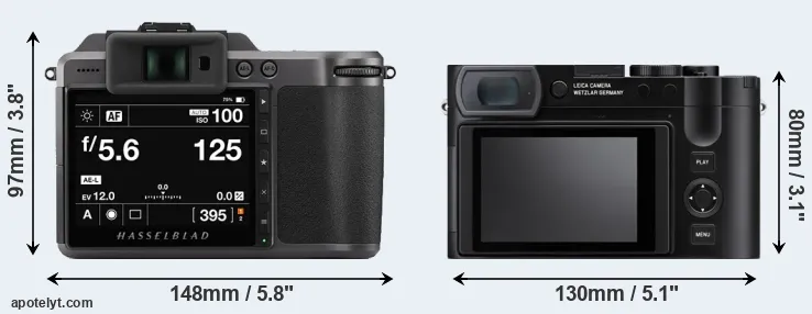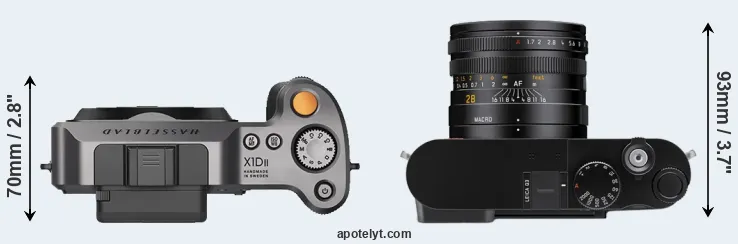 La taille physique et le poids du Hasselblad X1D II et du Leica Q3 sont illustrés dans le graphique ci-dessous. Les deux caméras sont affichées en fonction de leur taille relative. Toutes les dimensions sont arrondies au millimètre près.
