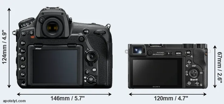 La taille physique et le poids du Nikon D850 et du Sony A6000 sont illustrés dans le graphique ci-dessous. Les deux caméras sont affichées en fonction de leur taille relative. Toutes les dimensions sont arrondies au millimètre près.