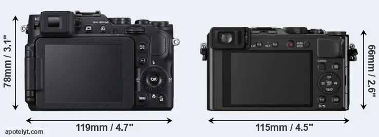 La taille physique et le poids du Nikon P7800 et du Panasonic LX100 sont illustrés dans le graphique ci-dessous. Les deux caméras sont affichées en fonction de leur taille relative. Toutes les dimensions sont arrondies au millimètre près.