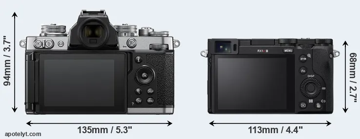 La taille physique et le poids du Nikon Z fc et du Sony RX1R III sont illustrés dans le graphique ci-dessous. Les deux caméras sont affichées en fonction de leur taille relative. Toutes les dimensions sont arrondies au millimètre près.