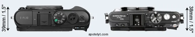 La taille physique et le poids du Olympus E-PL10 et du Olympus E-PL5 sont illustrés dans le graphique ci-dessous. Les deux caméras sont affichées en fonction de leur taille relative. Toutes les dimensions sont arrondies au millimètre près.