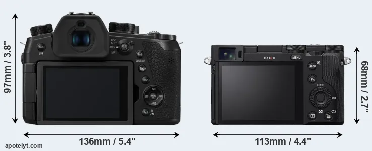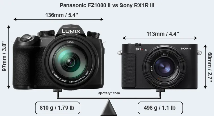 La taille physique et le poids du Panasonic FZ1000 II et du Sony RX1R III sont illustrés dans le graphique ci-dessous. Les deux caméras sont affichées en fonction de leur taille relative. Toutes les dimensions sont arrondies au millimètre près.