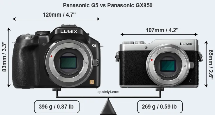 Size Panasonic G5 vs Panasonic GX850