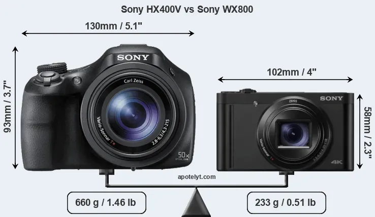 Size Sony HX400V vs Sony WX800