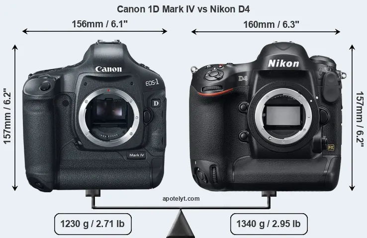 La Canon EOS-1D Mark IV e la Nikon D4 sono due fotocamere digitali rivelate al pubblico rispettivamente a ottobre 2009 e gennaio 2012. Entrambe sono fotocamere DSLR (Digital Single Lens Reflex) che sono dotati di un sensore APS-H (1D Mark IV) e un sensore full frame (D4). La Canon ha una risoluzione di 16,0 megapixel, mentre la Nikon fornisce 16,2 MP.