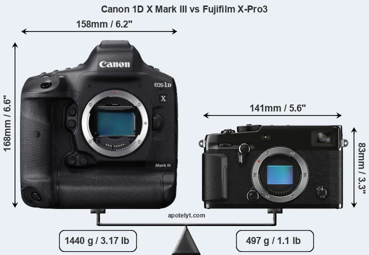 Size Canon 1D X Mark III vs Fujifilm X-Pro3
