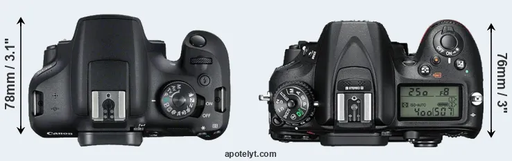 | 9. | Canon 1200D | 130 mm | 100 mm | 78 mm | 480 g | 500 | n | feb 2014 | US$ 449 | ebay.com | |