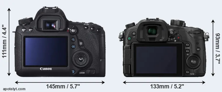 La Canon EOS 6D e la Panasonic Lumix DMC-GH4 sono due fotocamere digitali rivelate al pubblico rispettivamente a settembre 2012 e febbraio 2014. Il 6D è una fotocamera DSLR, mentre GH4 è una fotocamera mirrorless con obiettivo intercambiabile.Le fotocamere sono dotati di un sensore full frame (6D) e un sensore Quattro Terzi (GH4). La Canon ha una risoluzione di 20,0 megapixel, mentre la Panasonic fornisce 15,9 MP.