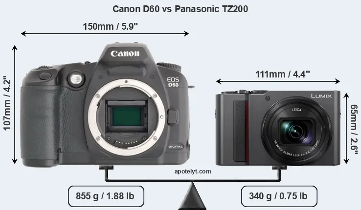 Andando oltre questa istantanea delle caratteristiche e delle caratteristiche principali, quali sono le differenze tra Canon EOS-D60 e Panasonic Lumix DC-TZ200? Quale dovresti comprare? Continua a leggere per scoprire come si confrontano queste due fotocamere rispetto alle dimensioni del corpo e altre caratteristiche.