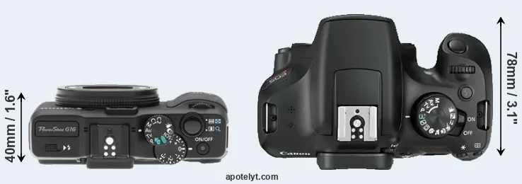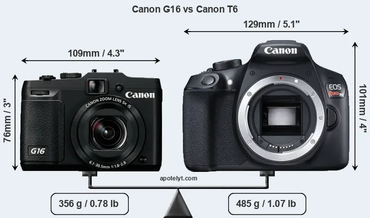 Size Canon G16 vs Canon T6