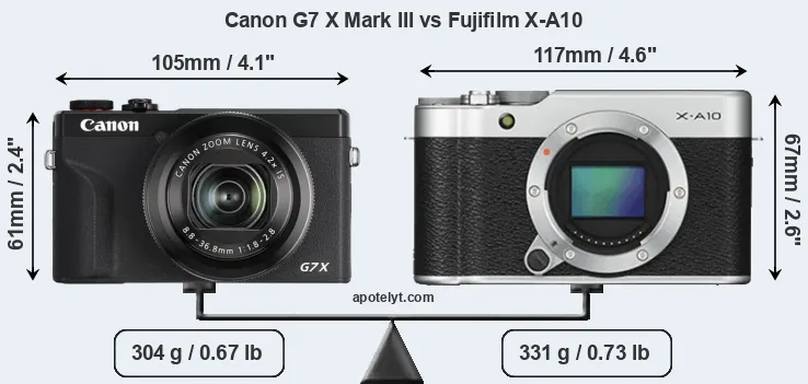 Size Canon G7 X Mark III vs Fujifilm X-A10