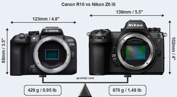 Size Canon R10 vs Nikon Z6 III